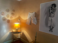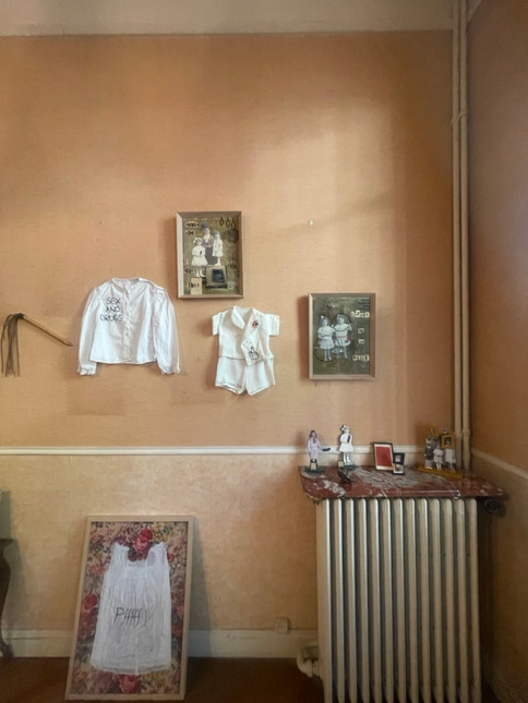 QQ mots de Céline Sassatelli à l'origine de ce projet : Dans la maison de mon enfance, dans ce musée familial, figé hors du temps, j'ai décidé, avant sa restauration, de déposer l'empreinte de mes activités artistiques.